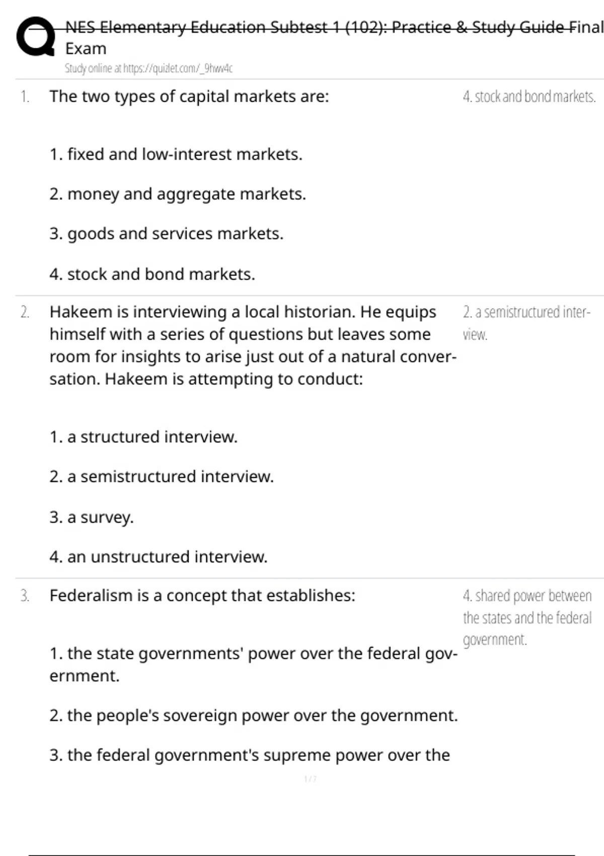 NES Elementary Education Subtest 1 (102): Practice & Study Guide Final Questions and Answers