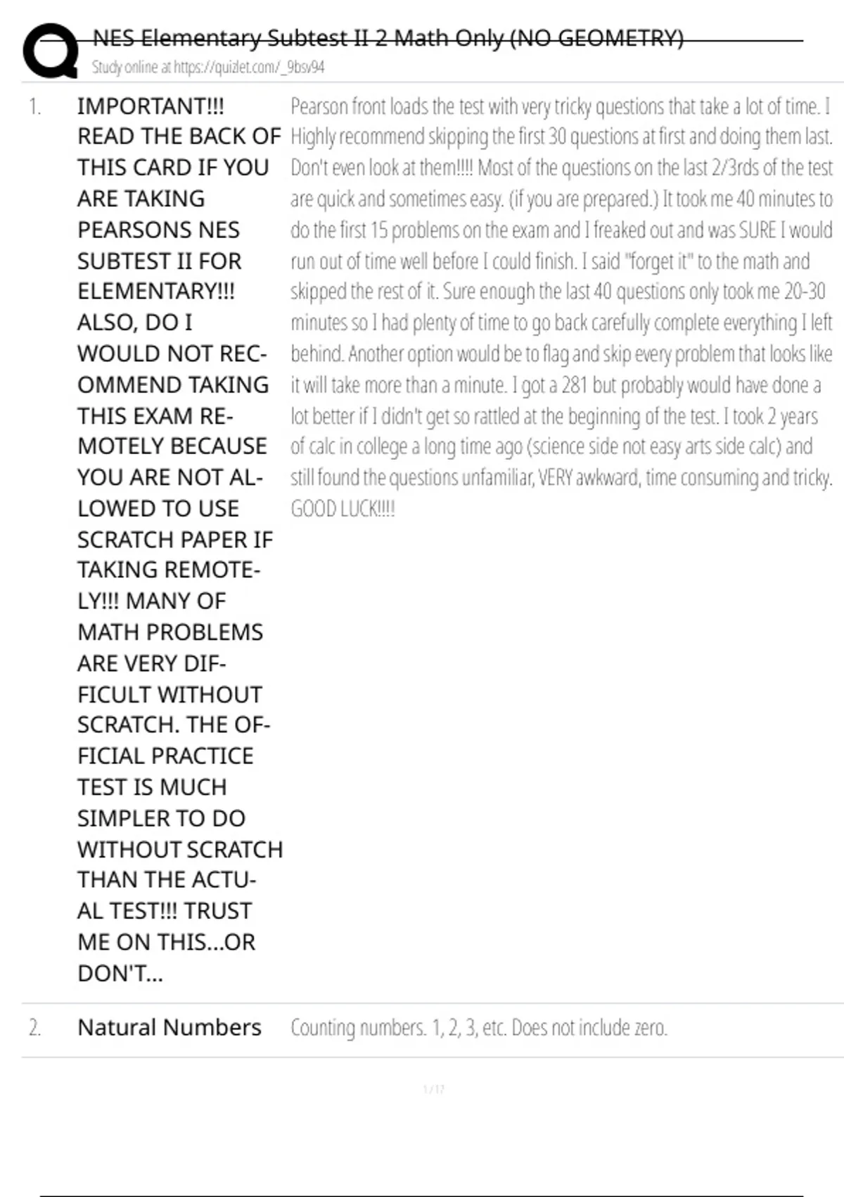 NES Elementary Subtest II 2 Math Only (NO GEOMETRY)