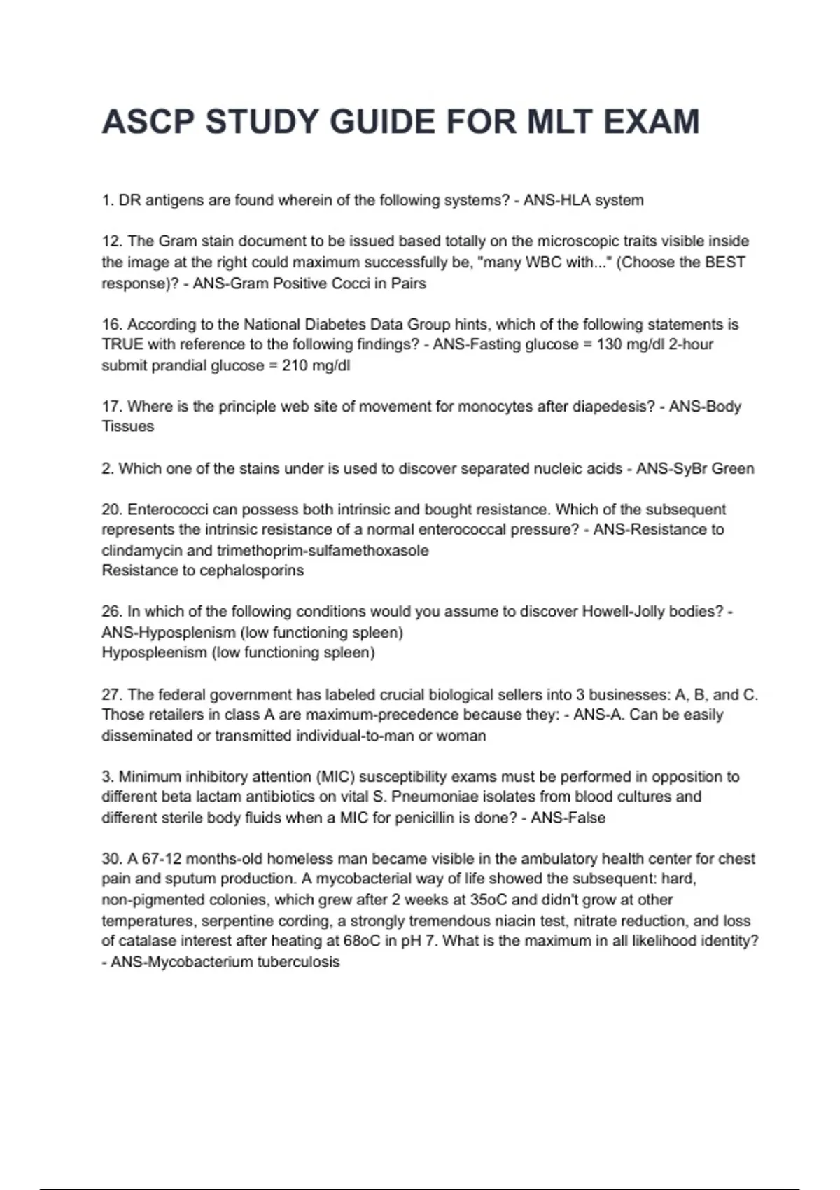 ASCP STUDY GUIDE FOR MLT EXAM NEWEST 2025/2026 ACTUAL EXAM COMPLETE QUESTIONS AND CORRECT DETAILED ANSWERS (VERIFIED ANSWERS) |ALREADY GRADED A+||BRAND NEW!!