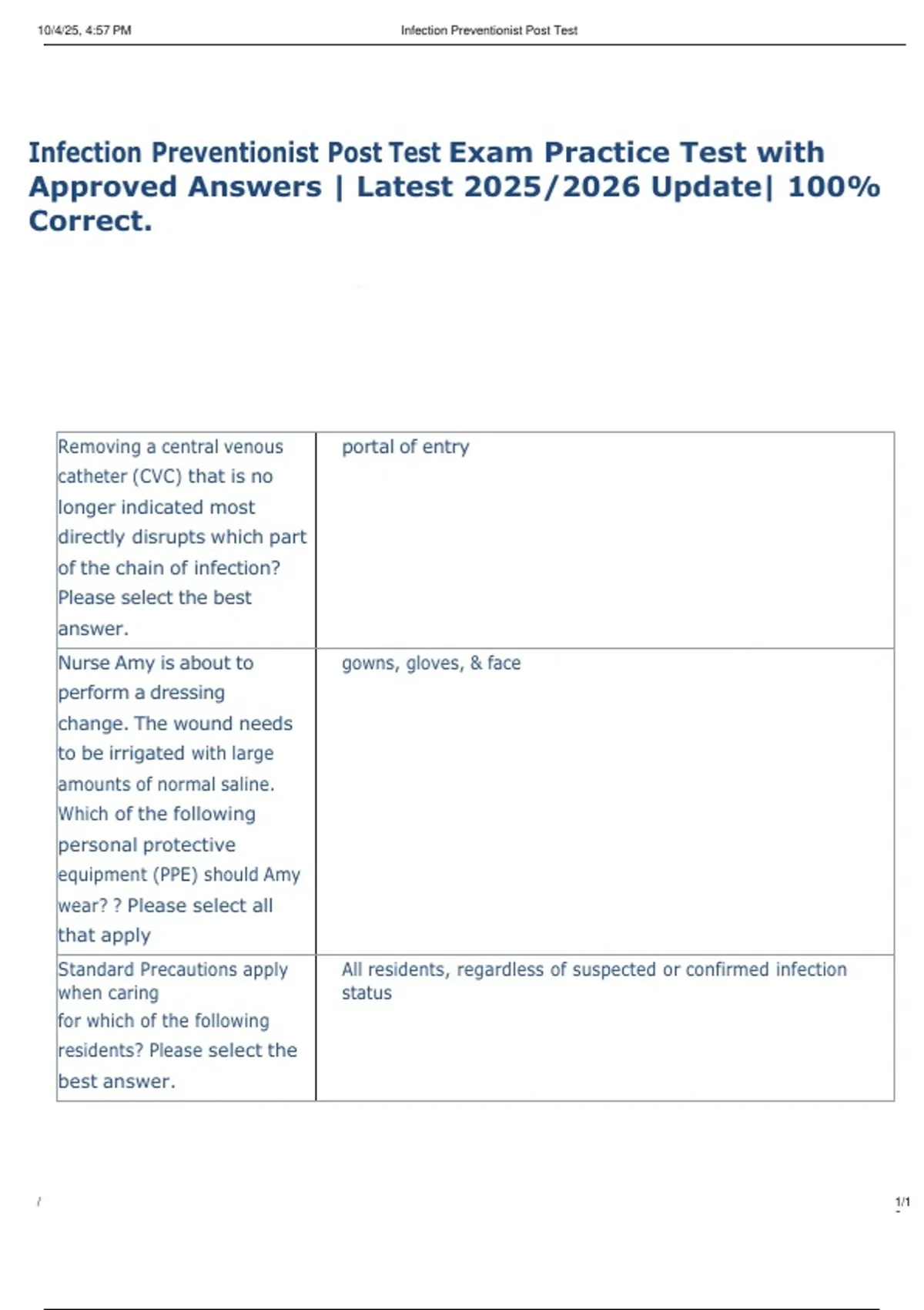 , 10/4/25, 4:57 PM Infection Preventionist Post Test