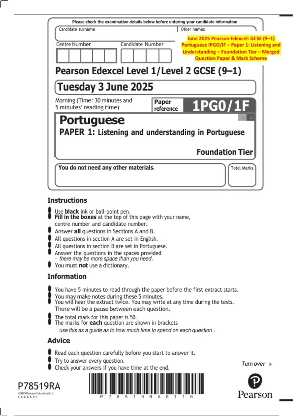 June 2025 Pearson Edexcel: GCSE (9–1)