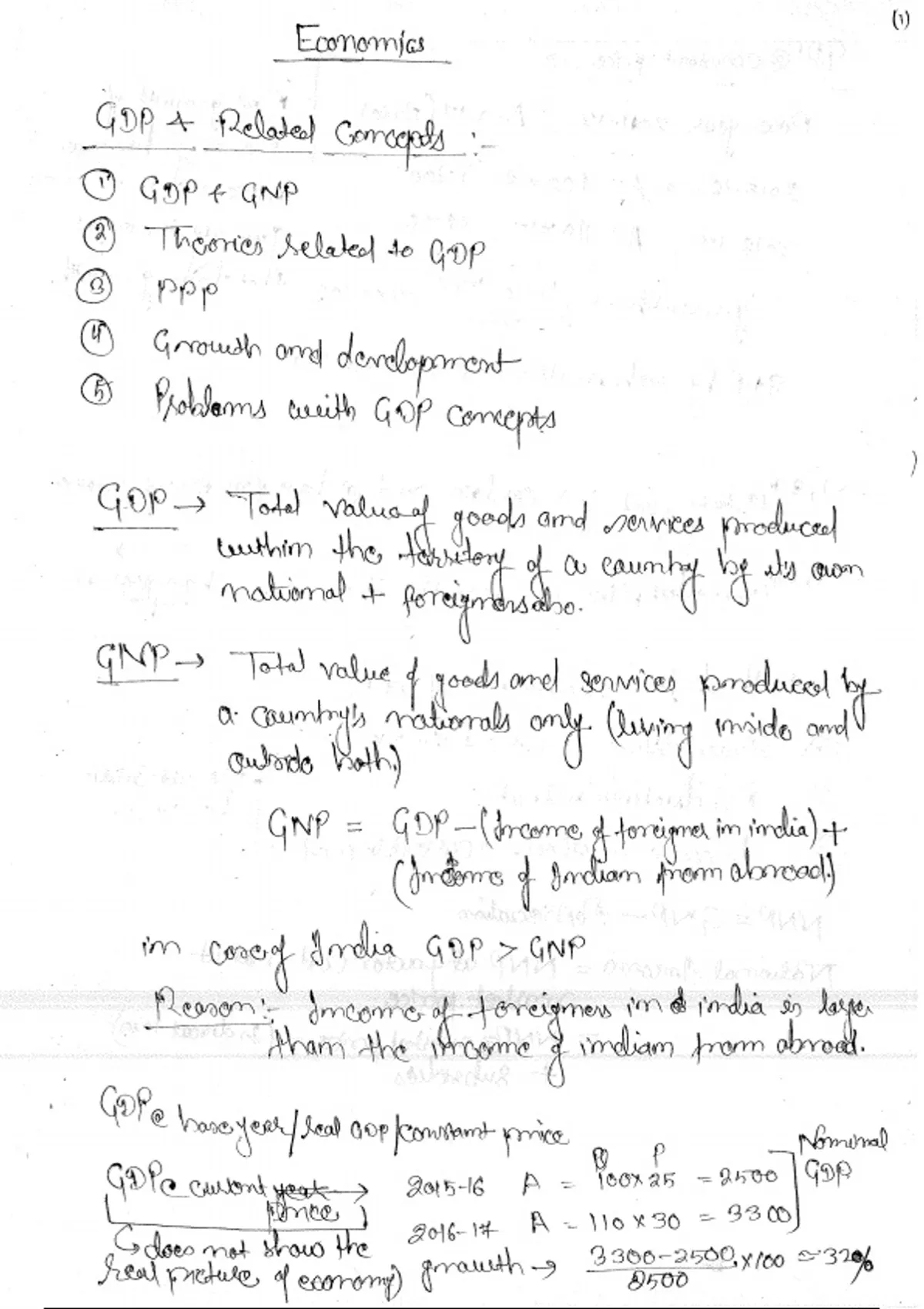 Comprehensive UPSC GS-III Indian Economy Notes covering basic concepts, national income, inflation, fiscal & monetary policy, agriculture, industry, banking, external sector, budget & economic survey highlights. These structure notes are perfect for quick revision & exam-focused preparation for both Prelims & Mains.