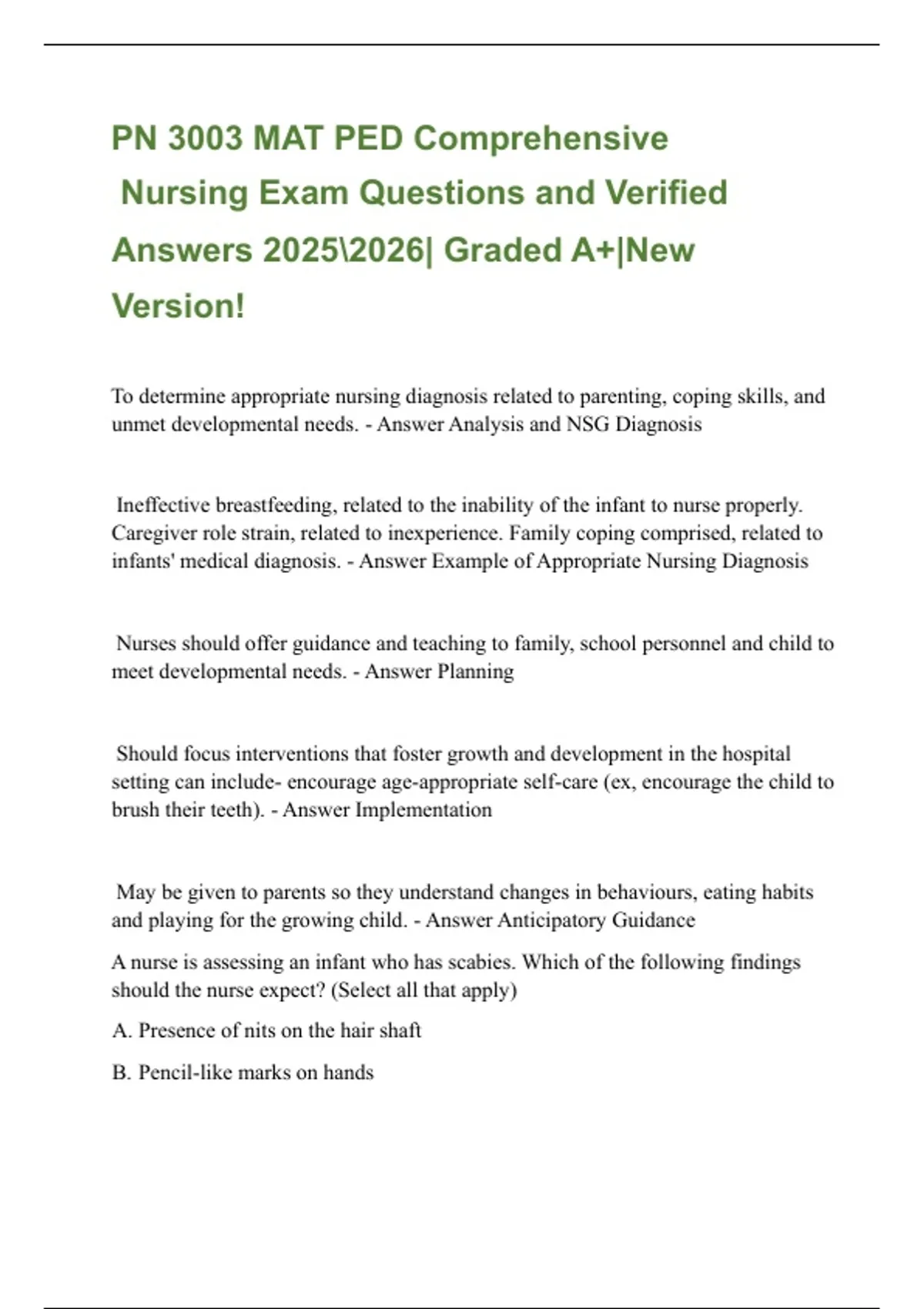 unmet developmental needs. - Answer Analysis and NSG Diagnosis