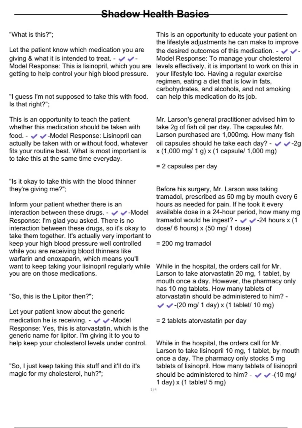 you are on those medications. Larson to take atorvastatin 20 mg, 1 tablet, by