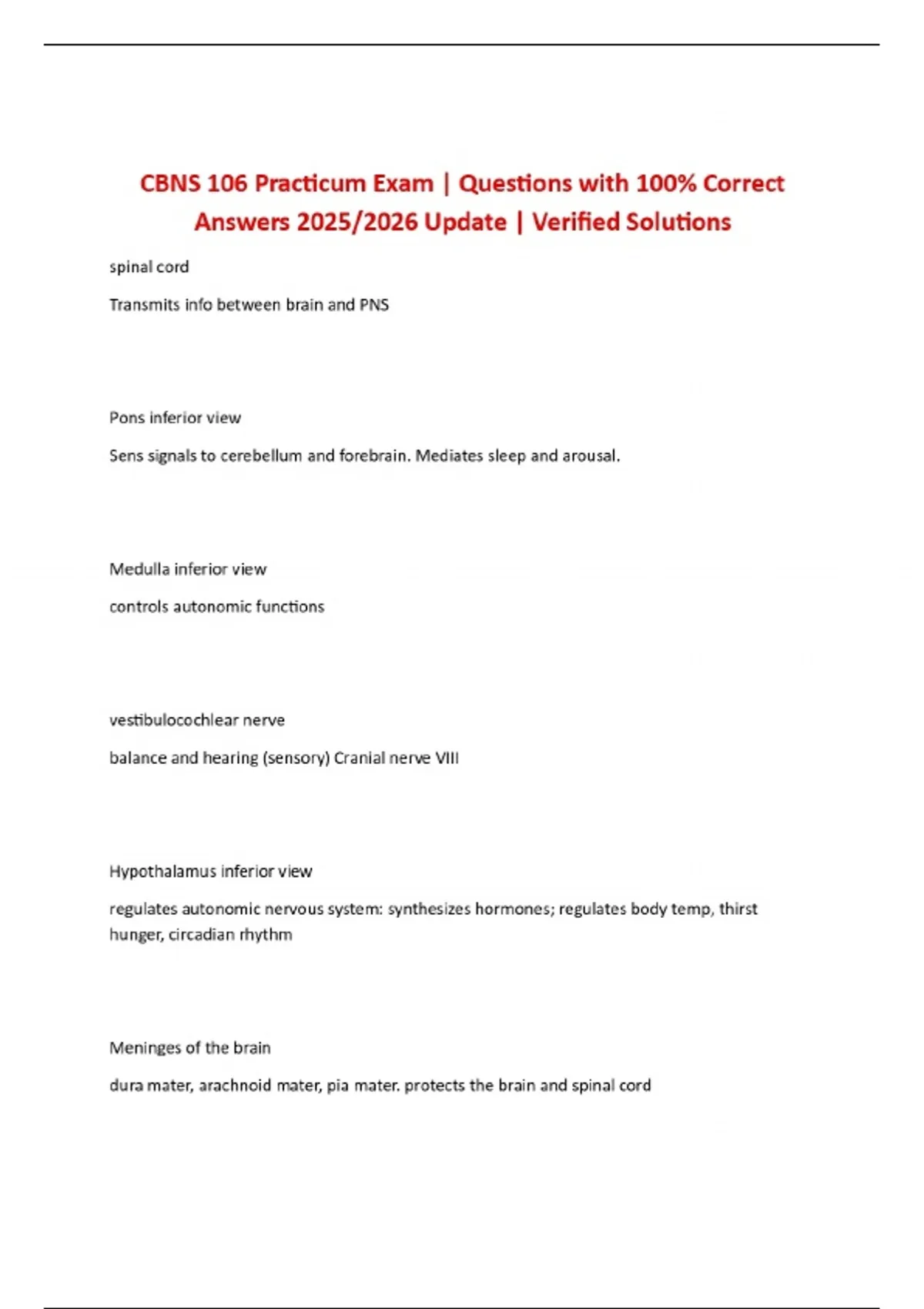 CBNS 106 Practicum Exam | Questions with 100% Correct Answers 2025/2026 Update | Verified Solutions