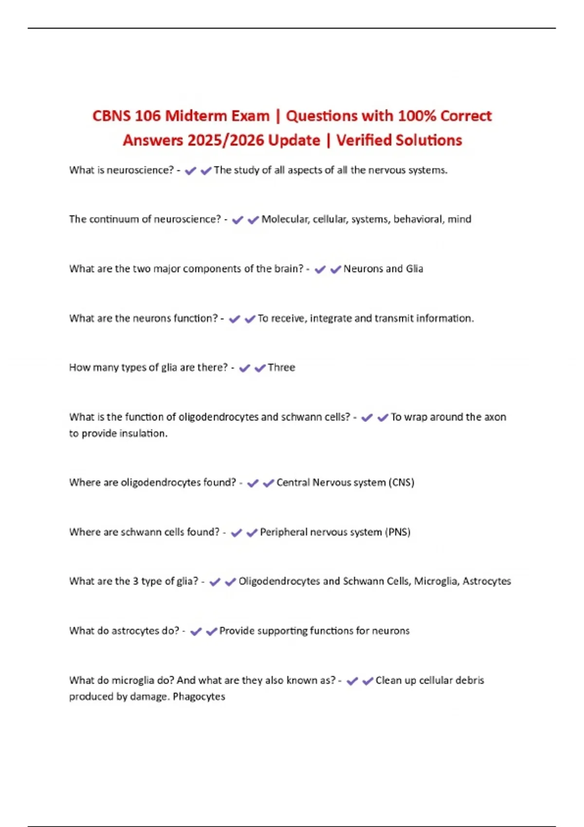 CBNS 106 Midterm Exam | Questions with 100% Correct Answers 2025/2026 Update | Verified Solutions
