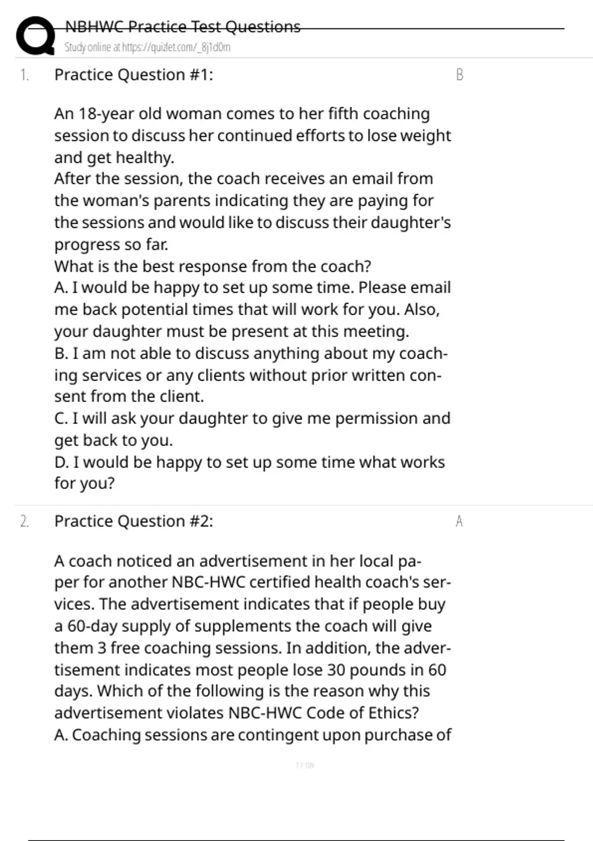 NBHWC Practice Test| UPDATE|COMPREHENSIVE MOST TESTED QUESTIONS AND VERIFIED SOLUTIONS|GET IT 100% ACCURATE!!
