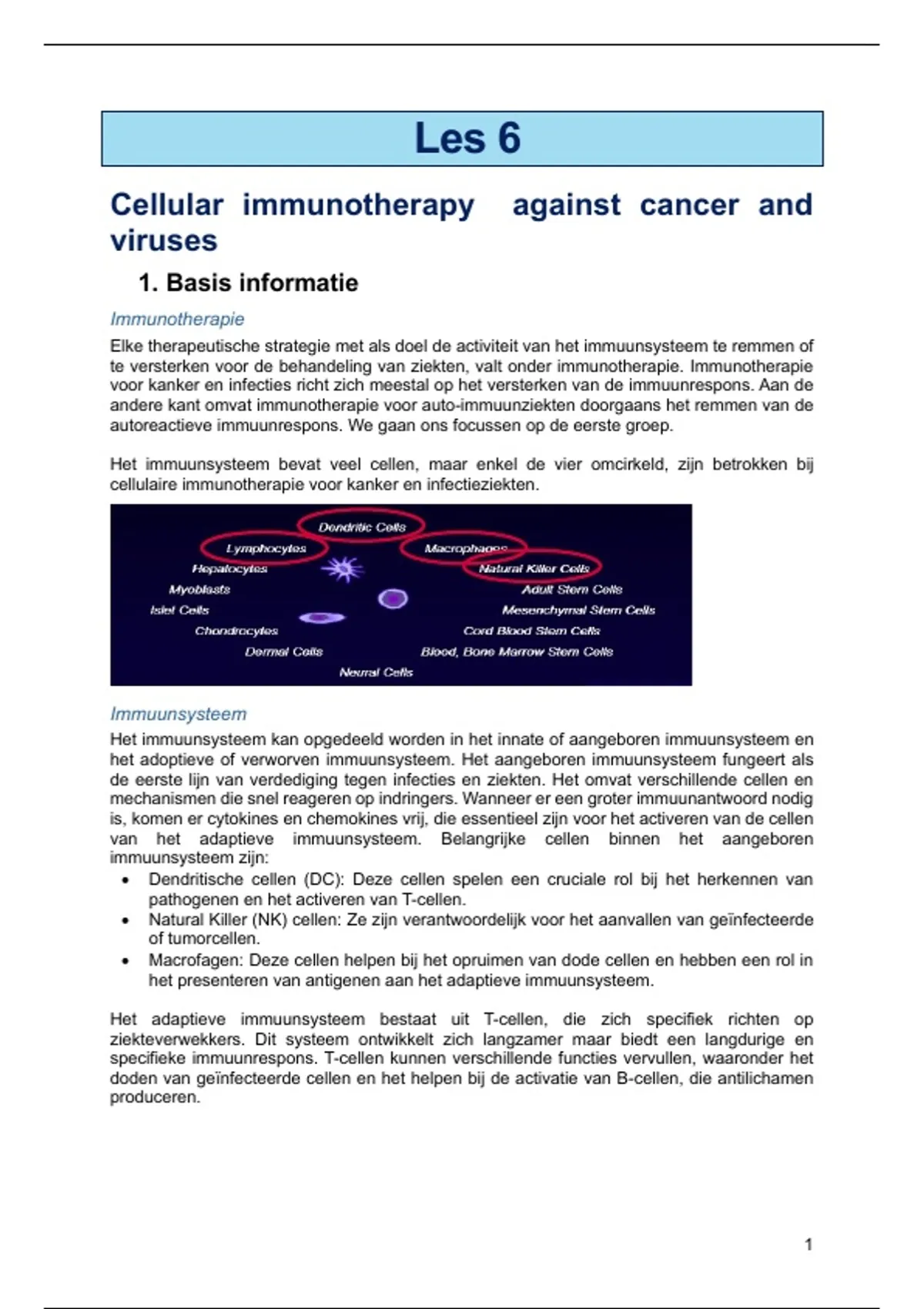 cellulaire immunotherapie voor kanker en infectieziekten.