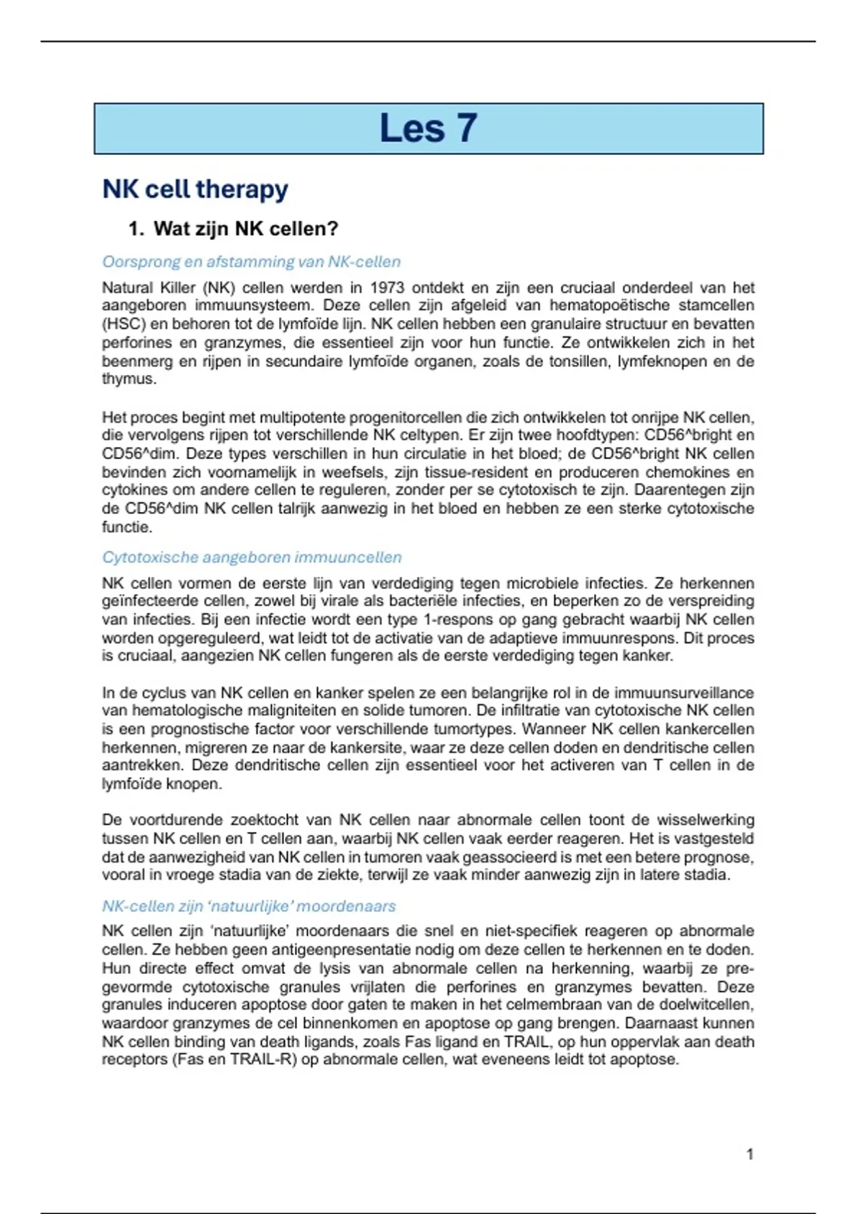 1. Wat zijn NK cellen?