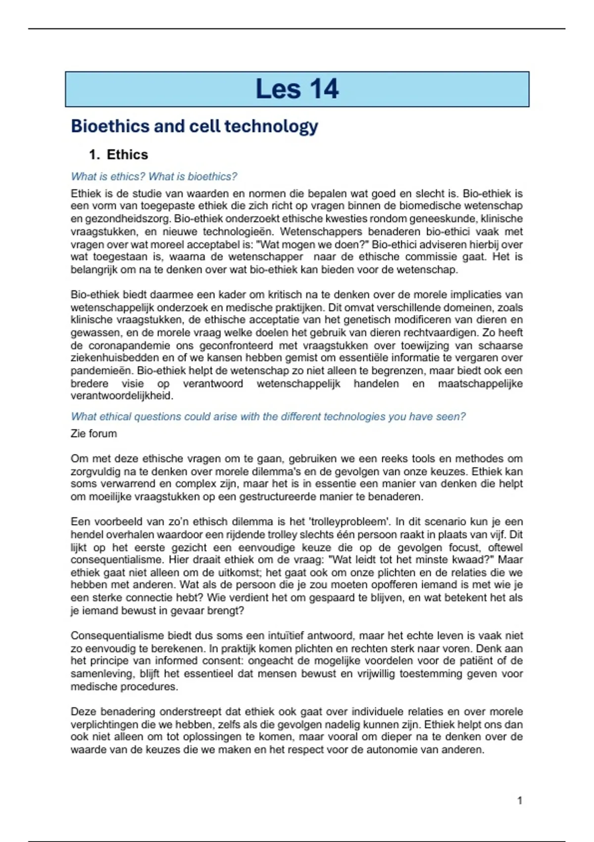 Ethiek is de studie van waarden en normen die bepalen wat goed en slecht is. Bio-ethiek is