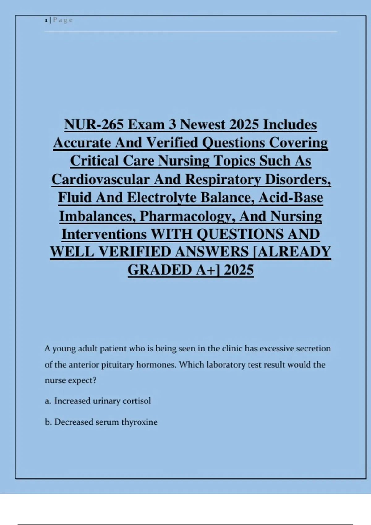 d. Adrenocorticotropic hormone level ......-ANSWER-ANS: B