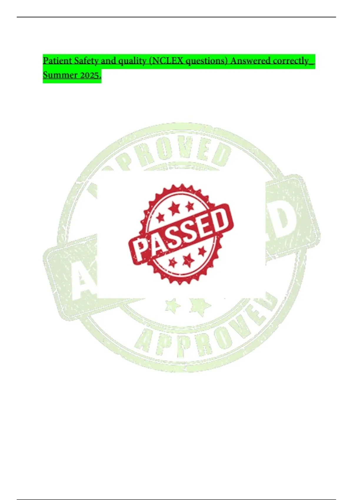 Patient Safety and quality (NCLEX questions) Answered correctly_ Summer 2025.