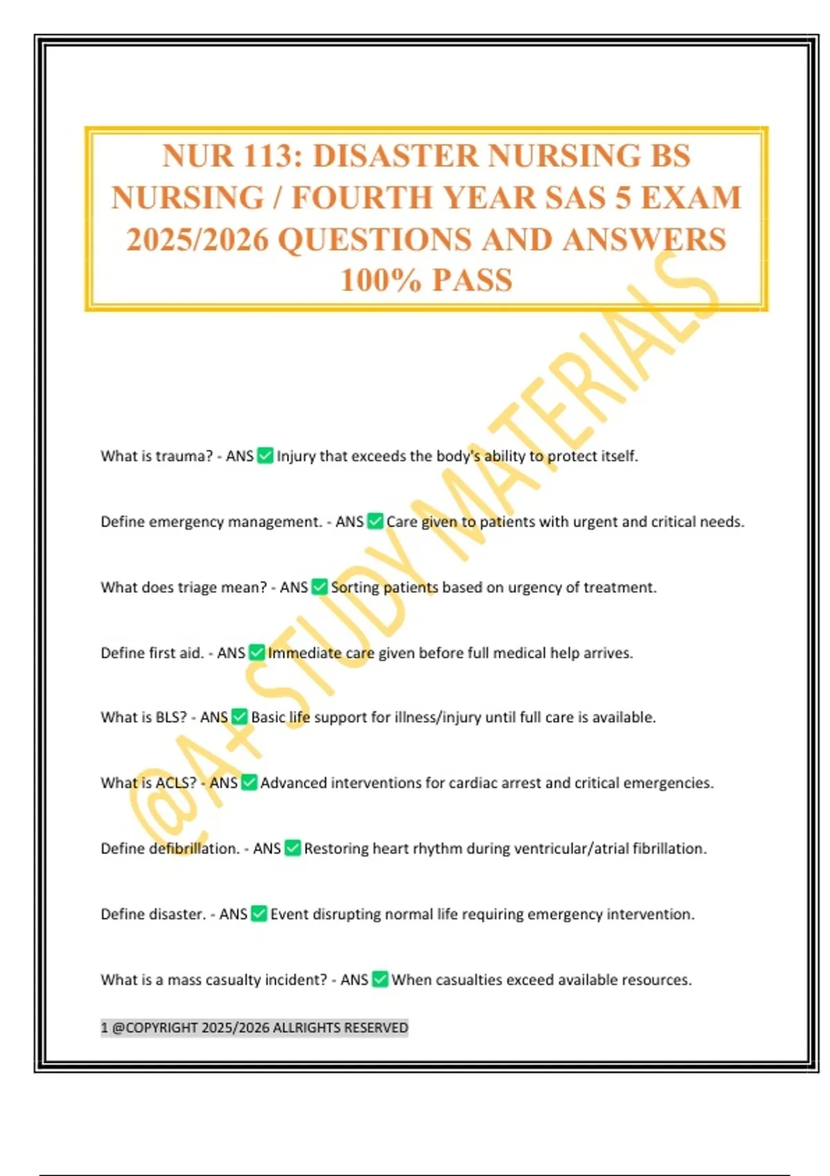 NUR 113: DISASTER NURSING BS