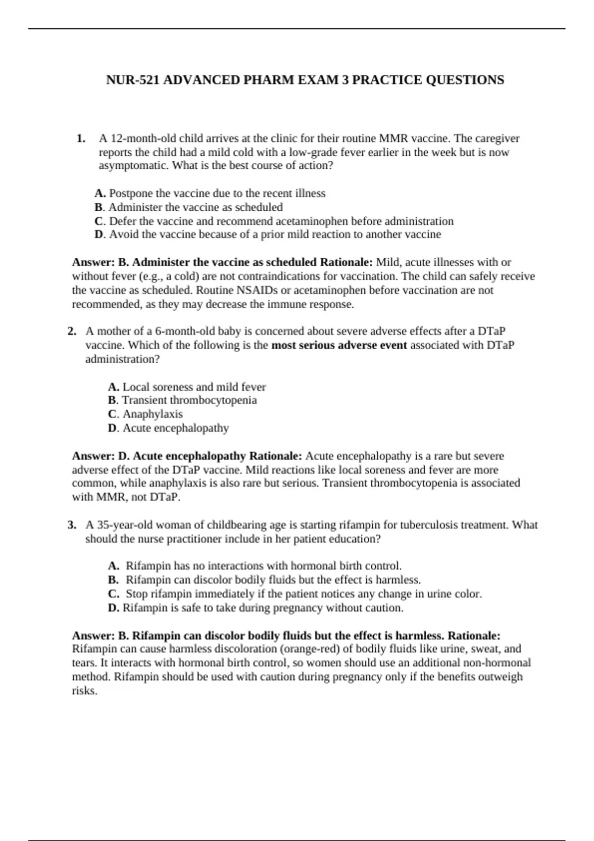 NUR-521 ADVANCED PHARM EXAM 3 PRACTICE QUESTIONS