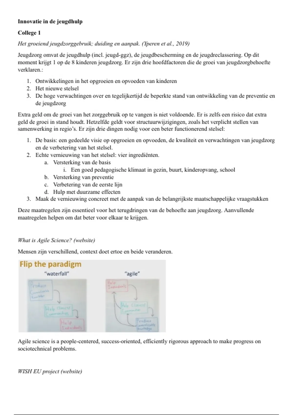 Samenvatting colleges Innovatie in de jeugdhulp