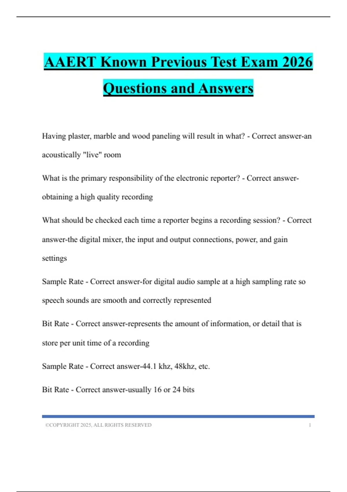 AAERT Known Previous Test Exam 2026 Questions and Answers