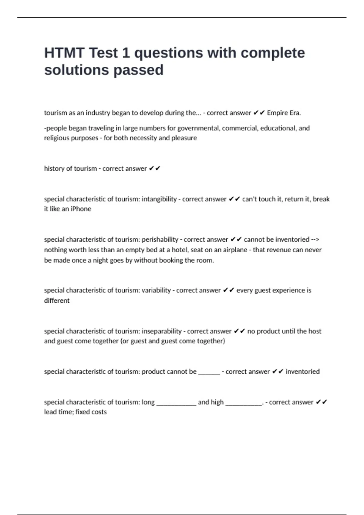 special characteristic of tourism: variability - correct answer ✔✔ every guest experience is
