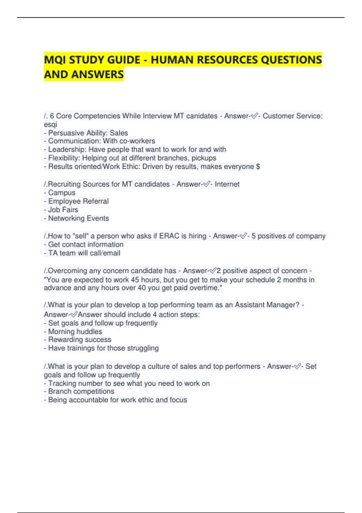 /. 6 Core Competencies While Interview MT canidates - Answer-✅- Customer Service: