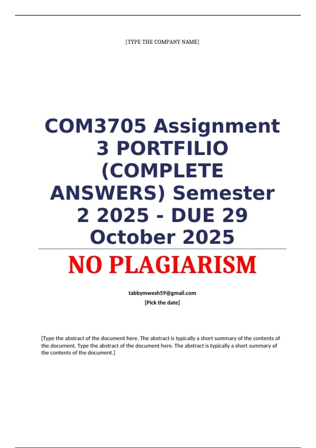 COM3705 Assignment 3 PORTFILIO (COMPLETE ANSWERS) Semester 2 2025 -
