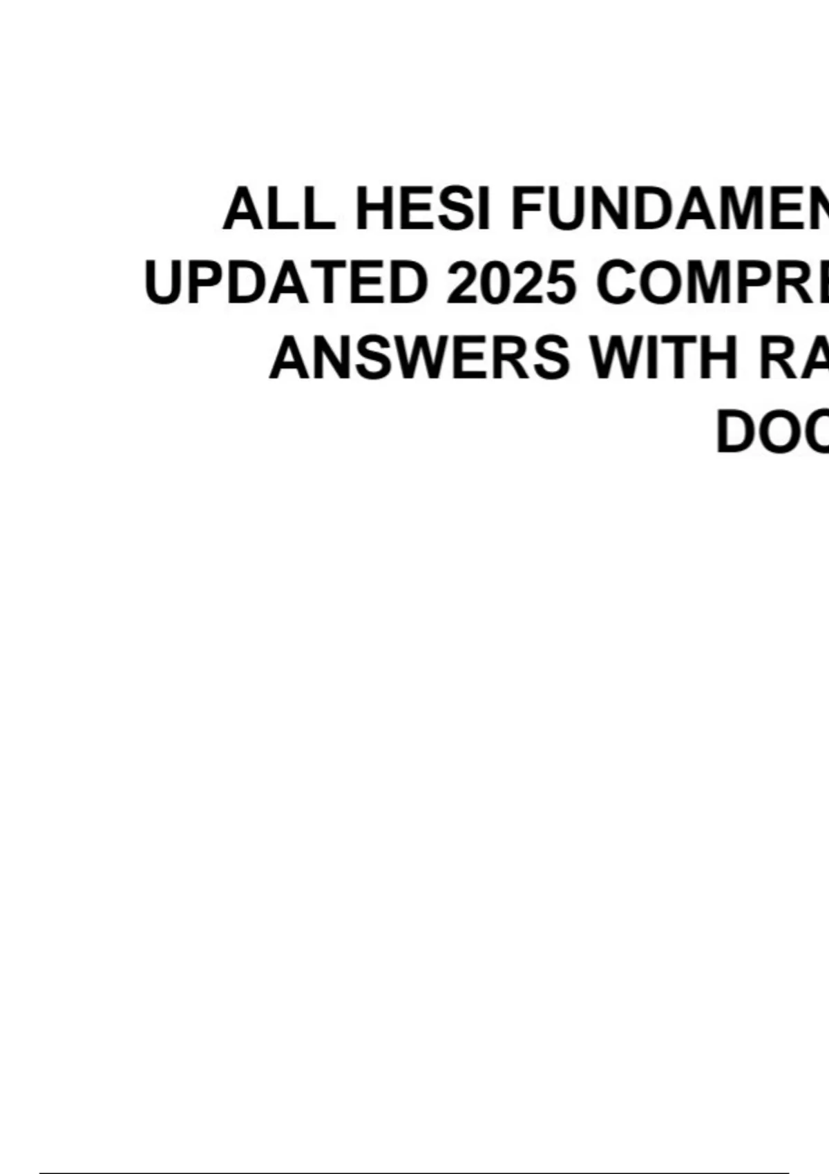 HESI FUNDAMENTALS EXAM TEST BANK UPDATED 2025 COMPREHENSIVE QUESTIONS AND ANSWERS WITH RATIONALES