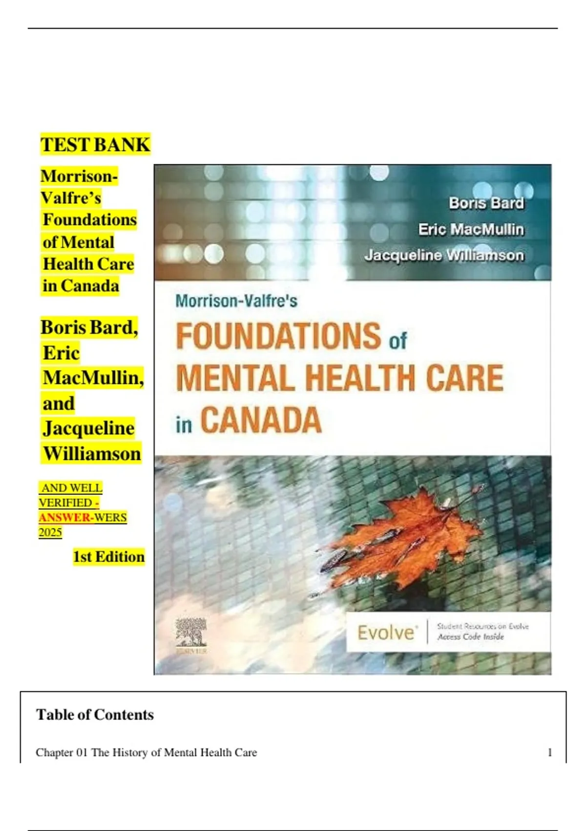 , Test Bank - Morrison-Valfre’s Foundations of Mental Health Care in Canada, 1st Edition (Bard,