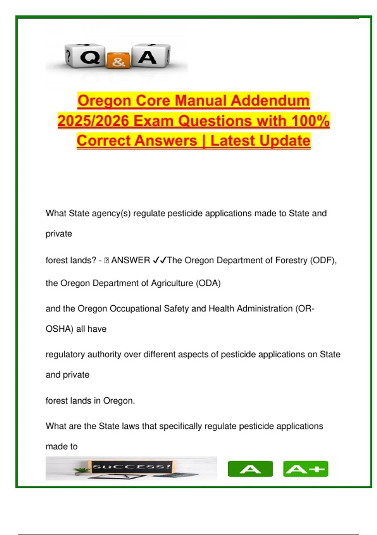 Oregon? - 🧠 ANSWER ✔✔Both OR-OSHA and ODA enforce different