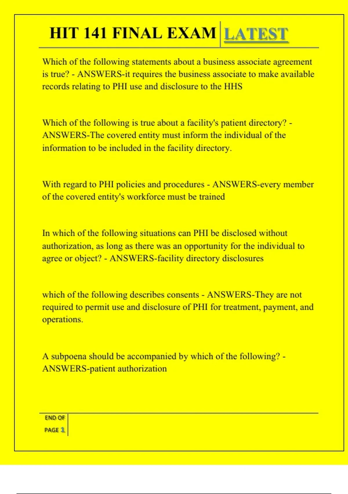 , HIT 141 FINAL EXAM LATEST