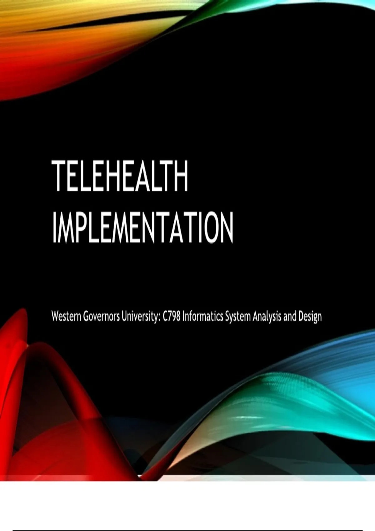 WGU C798: Informatics System Analysis and Design Telehealth Implementation with complete solutions. WGU C798: Informatics System Analysis and Design Telehealth Implementation with complete solutions.