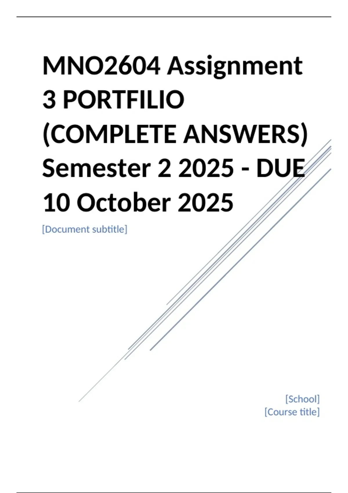 , MNO2604 Assignment 3 PORTFILIO (COMPLETE ANSWERS) Semester 2 2025 - DUE 10 October