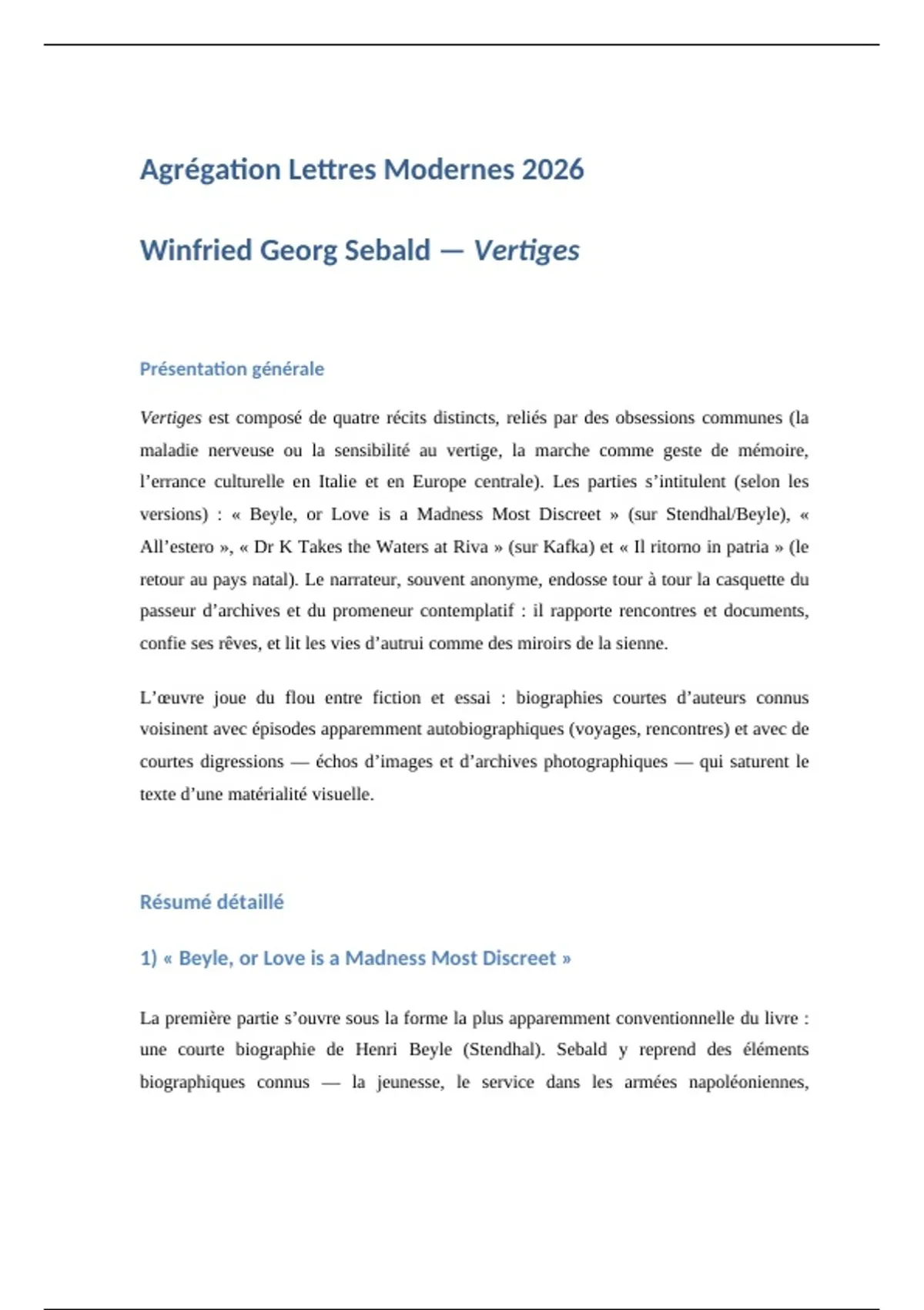 Résumé détaillé de l'oeuvre "Vertiges" de Winfried Georg Sebald, avec thématiques détaillées