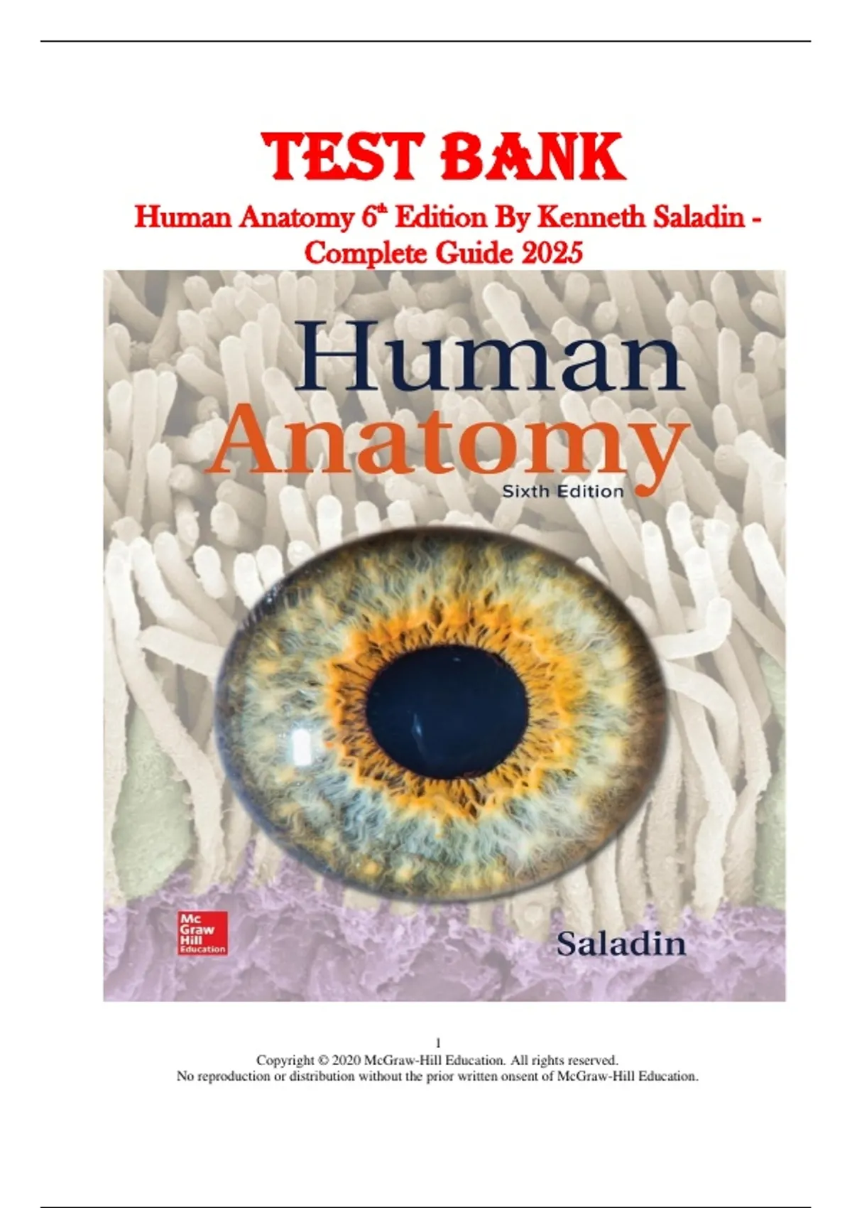 Human Anatomy – 6th Edition by Kenneth Saladin | McGraw-Hill Education (2020) | Complete Test Bank with Answers