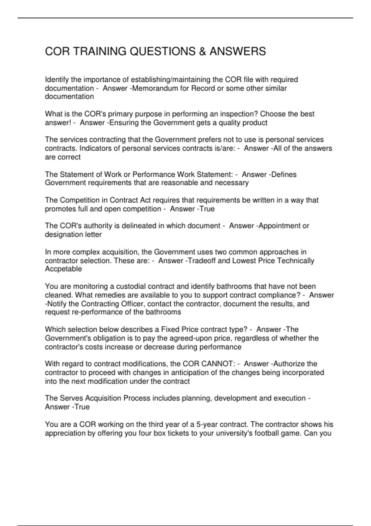 The Statement of Work or Performance Work Statement: - Answer -Defines