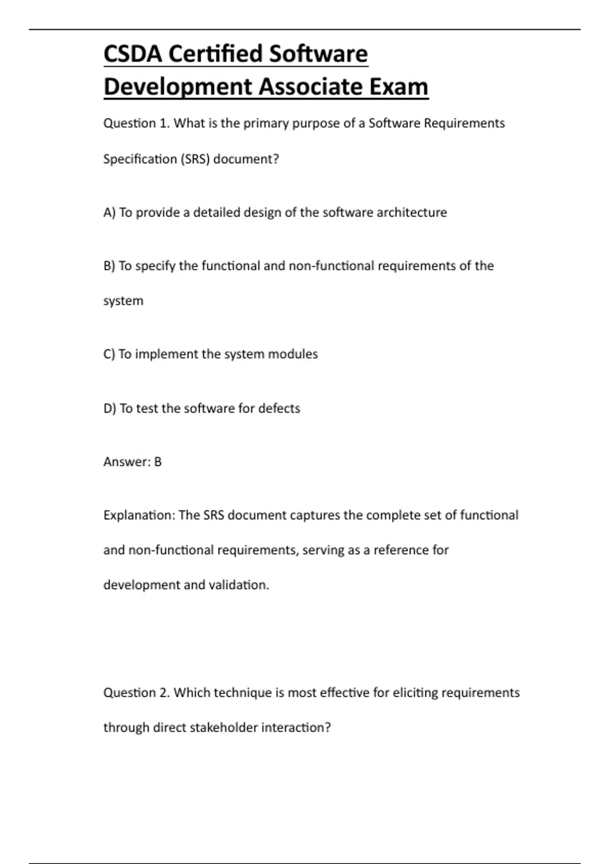 The Certified Software Development Associate (CSDA) Exam, offered by the IEEE Computer Society, is an entry-level certification for software developers. It validates knowledge in software engineering principles, lifecycle models, programming fundamentals, testing, project management basics, and software design. It is suited to students, recent graduates, and early-career professionals entering the software development field. The certification demonstrates foundational competence and readiness for professional practice.