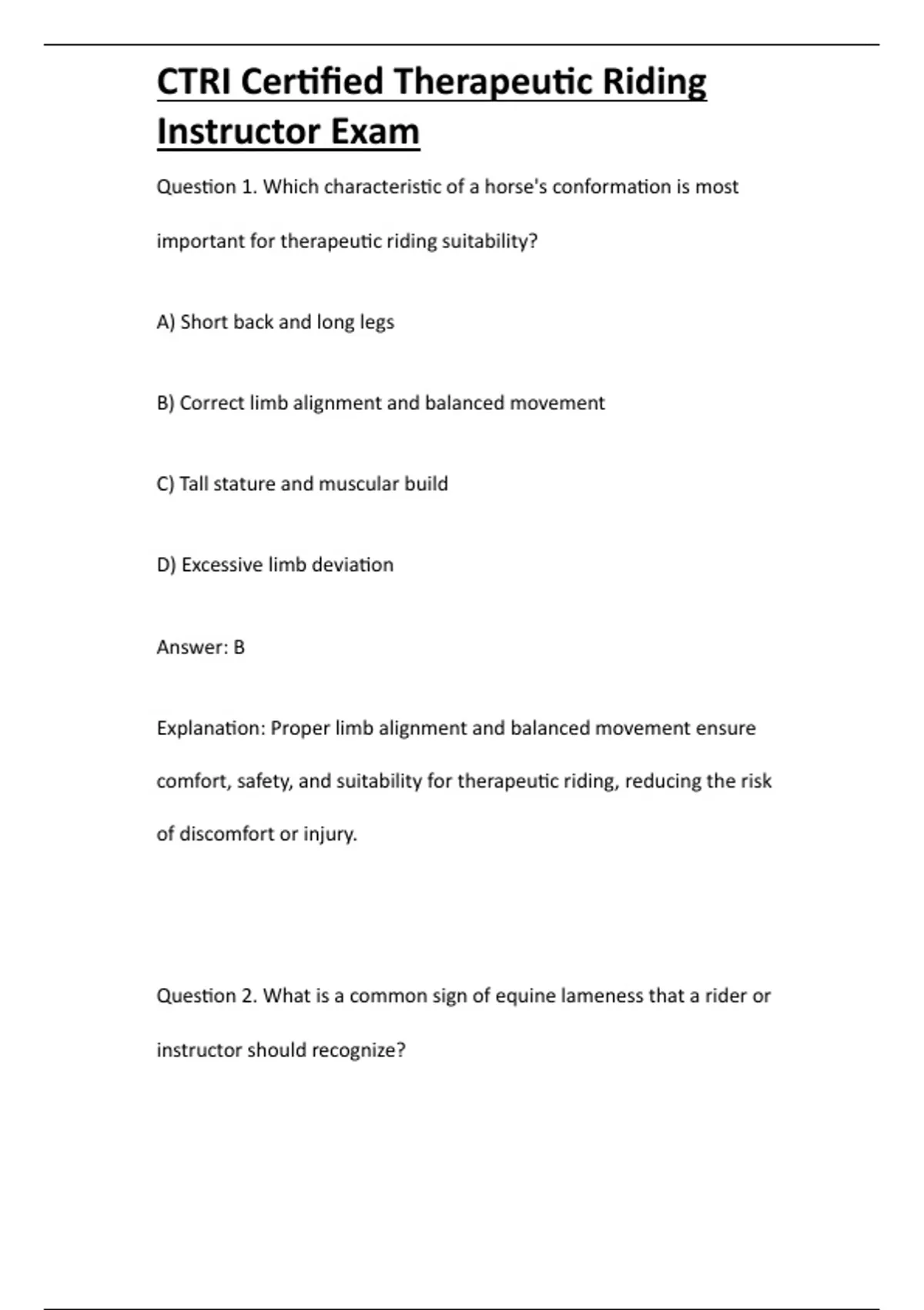 Question 3. When evaluating a horse’s temperament for therapeutic