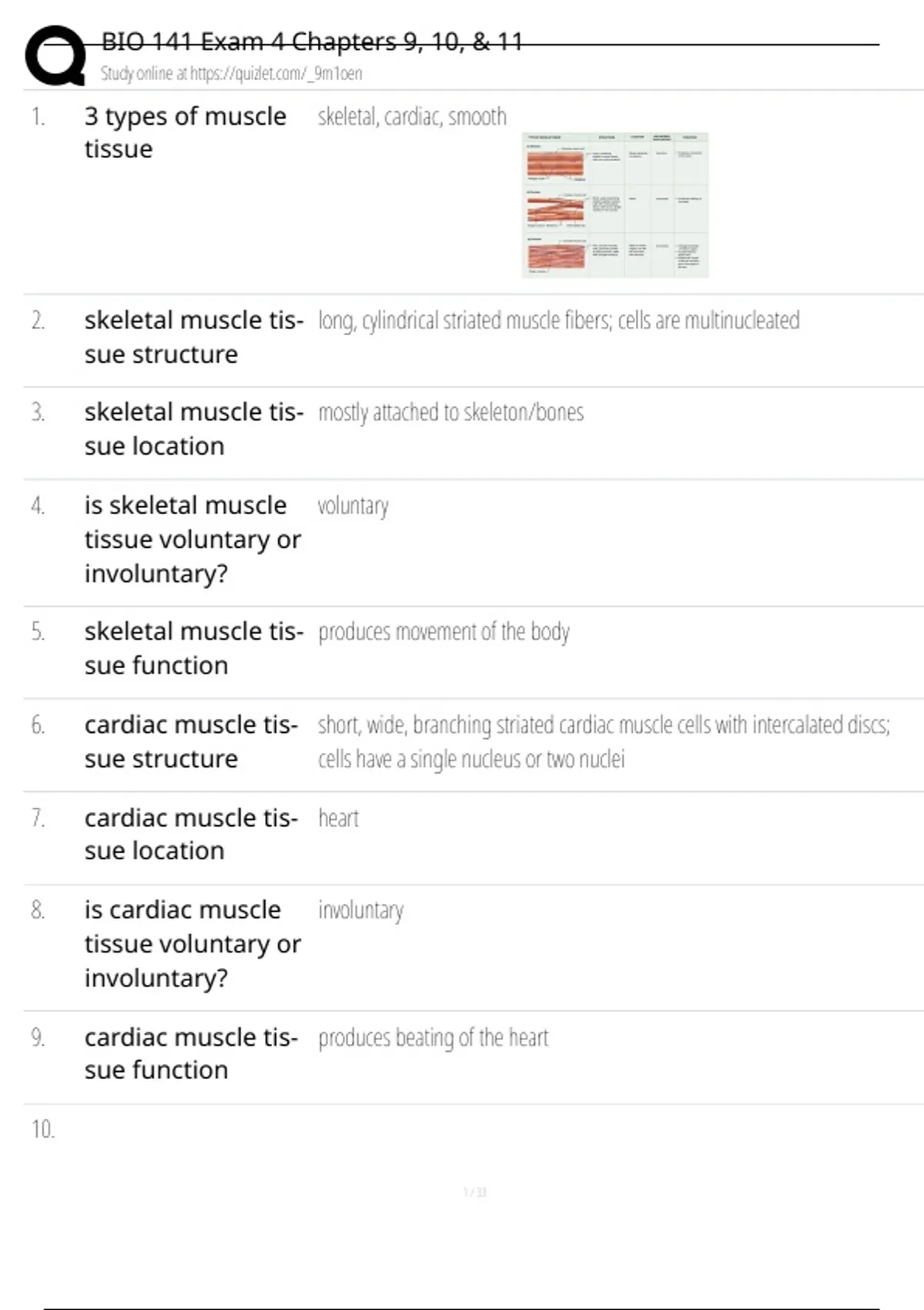 1. 3 types of muscle skeletal, cardiac, smooth