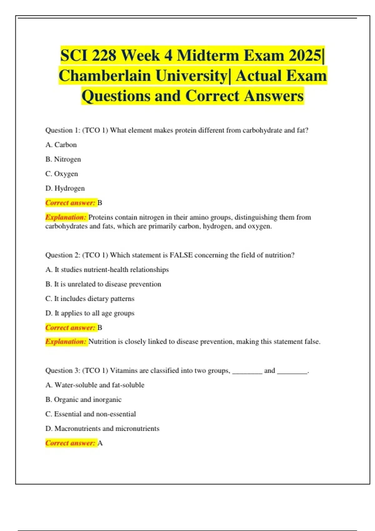 Question 1: (TCO 1) What element makes protein different from carbohydrate and fat?