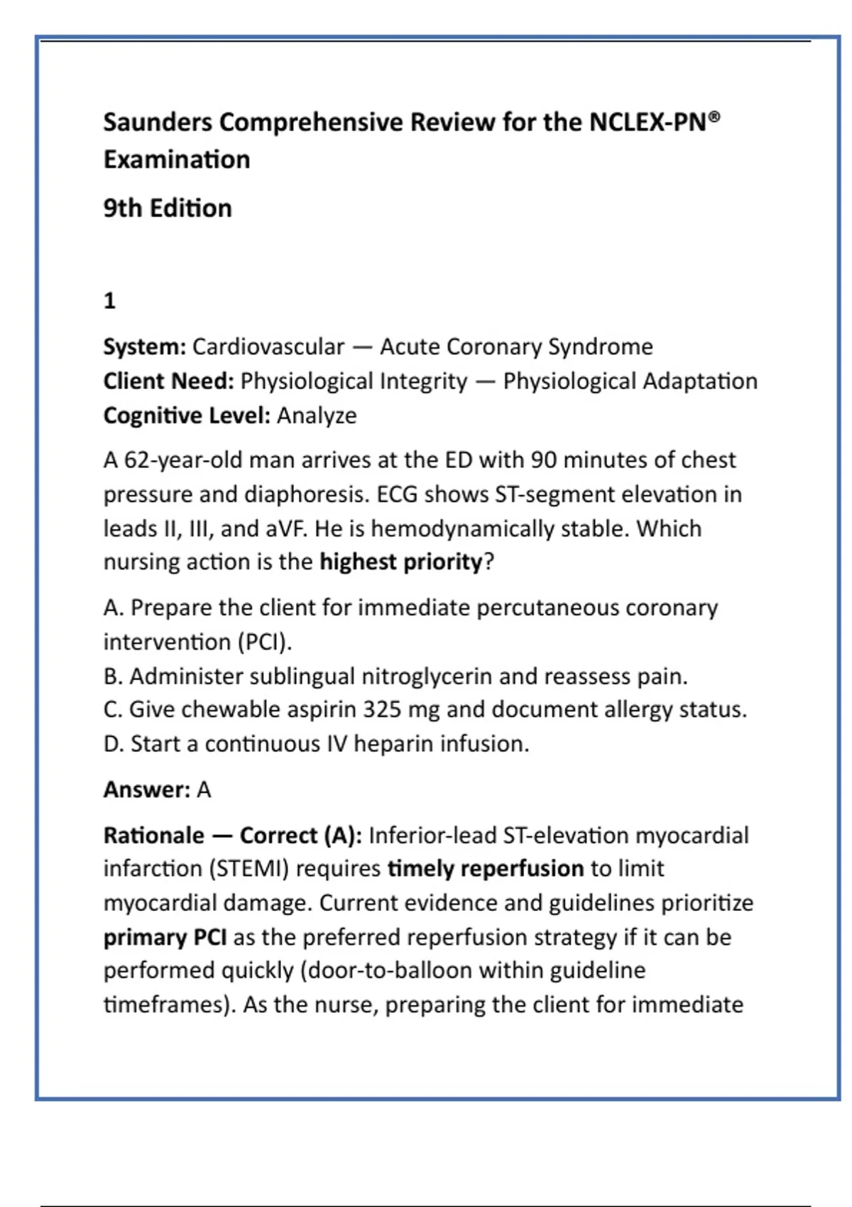 Rationale — Correct (A): Inferior-lead ST-elevation myocardial