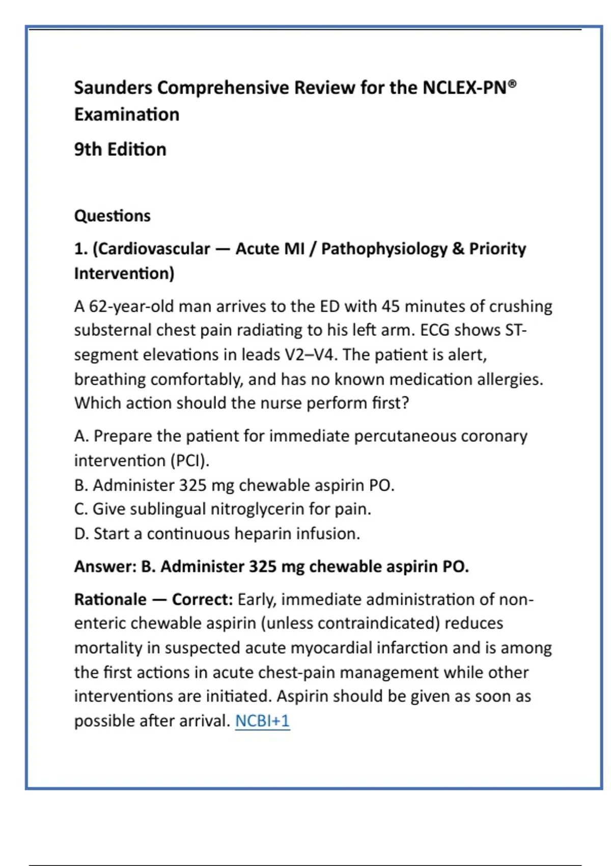 1. (Cardiovascular — Acute MI / Pathophysiology & Priority