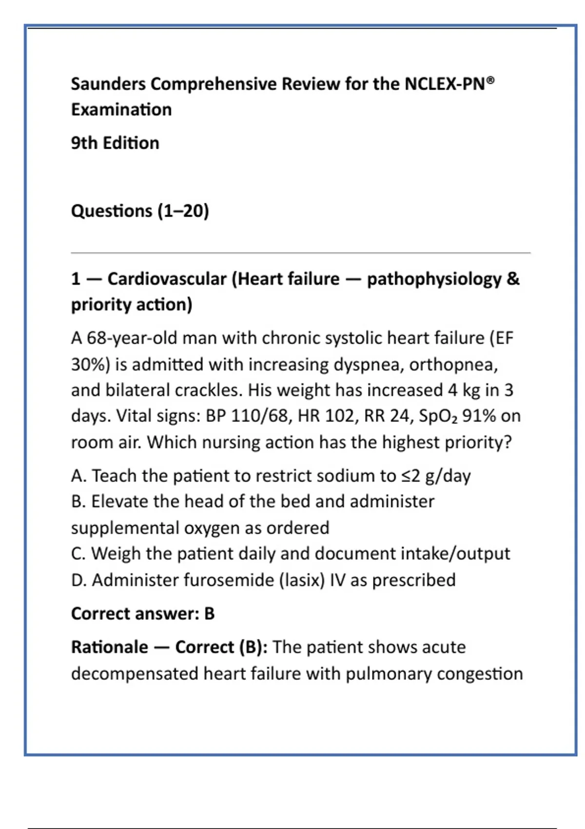 1 — Cardiovascular (Heart failure — pathophysiology &