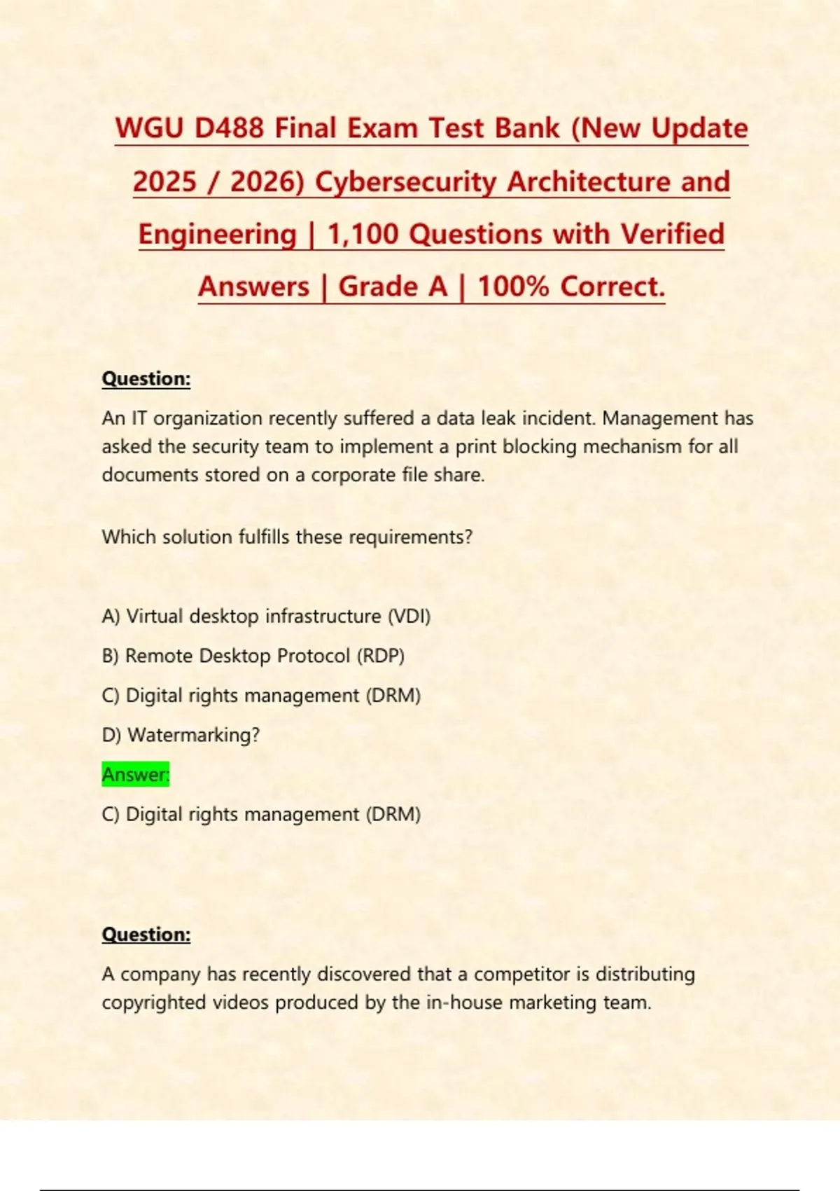 Answers | Grade A | 100% Correct.