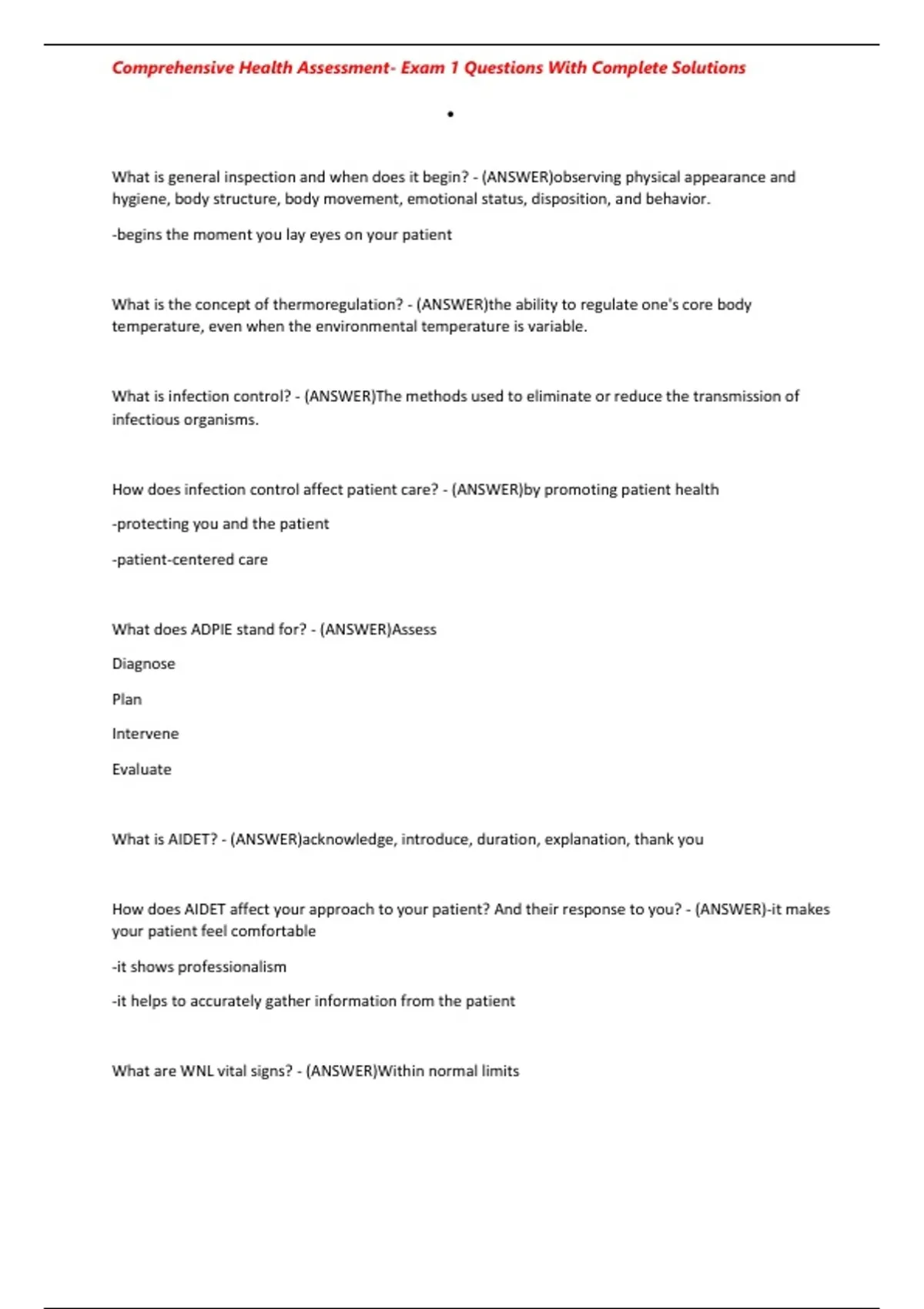 , Comprehensive Health Assessment- Exam 1 Questions With Complete Solutions
