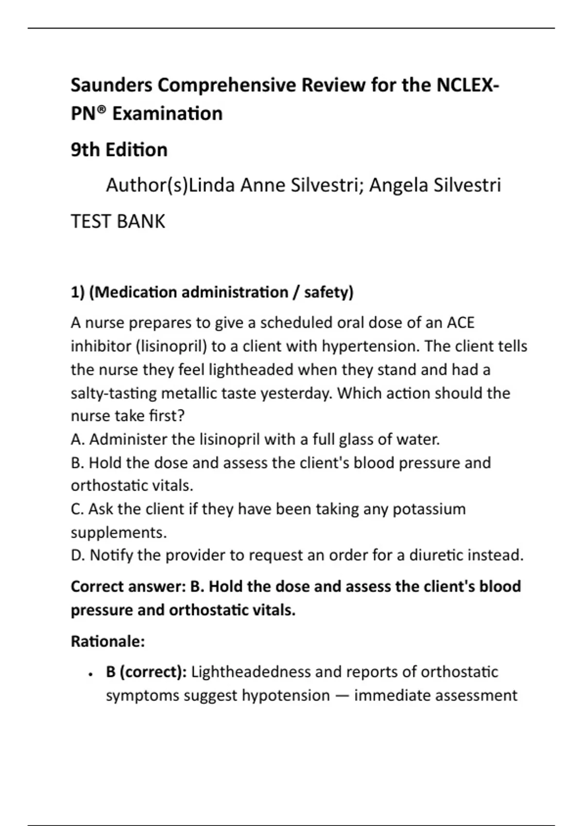 • C: Asking about potassium is reasonable (ACE inhibitors