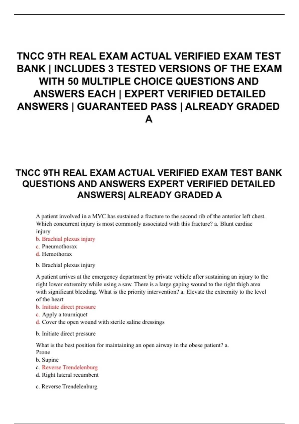 TNCC 9TH REAL EXAM ACTUAL VERIFIED EXAM TEST BANK