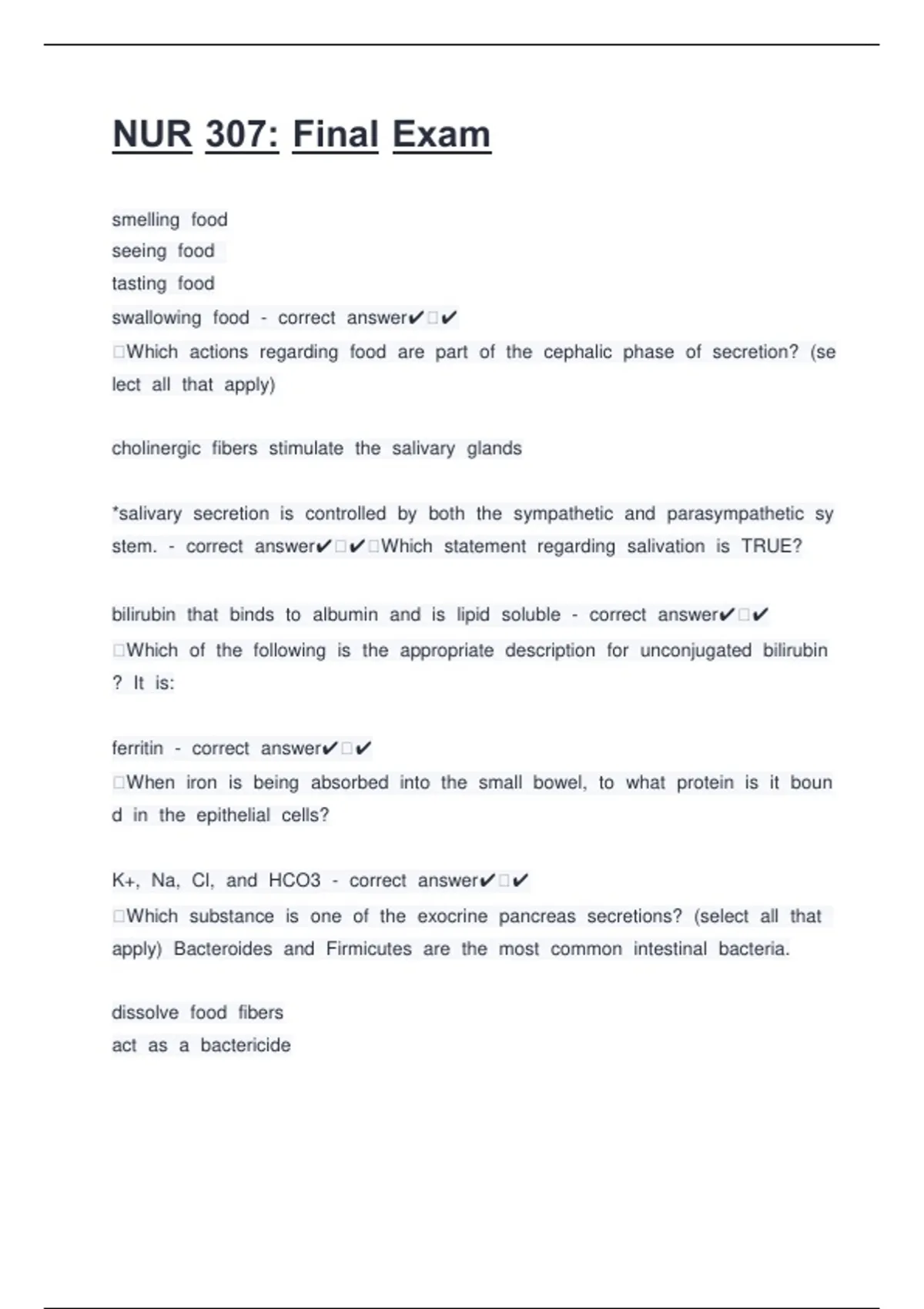 NUR 307 Final Study UPDATED ACTUAL Exam Questions and CORRECT Answers