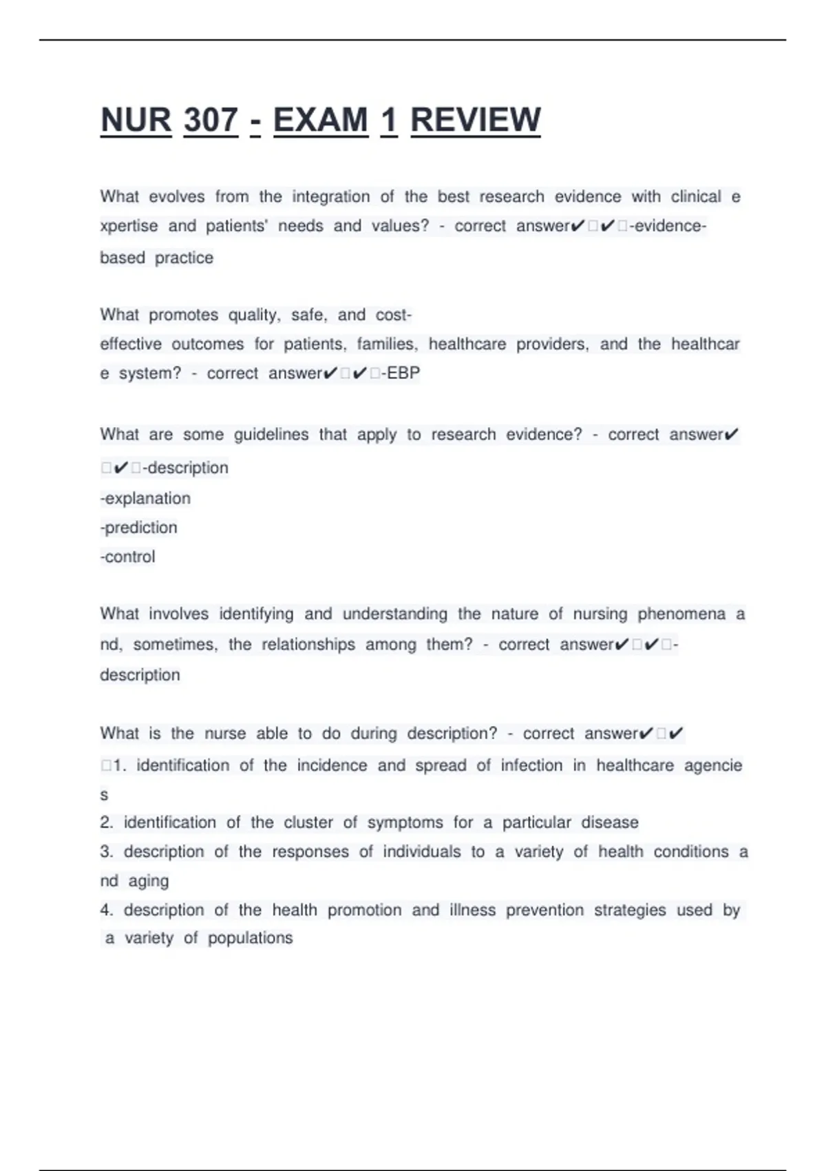 NUR 307 - EXAM 1 REVIEW UPDATED ACTUAL Exam Questions and CORRECT Answers