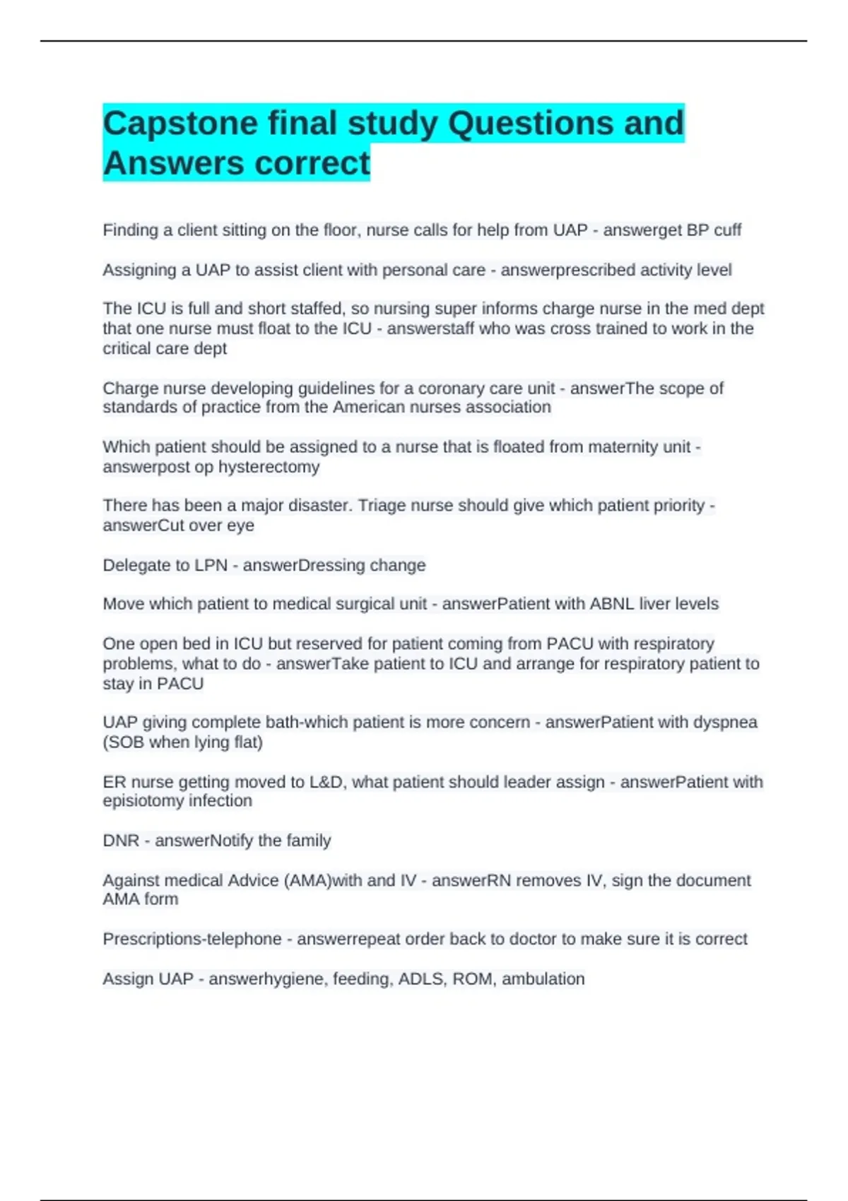 Ethical - answerAssign least care to UAP