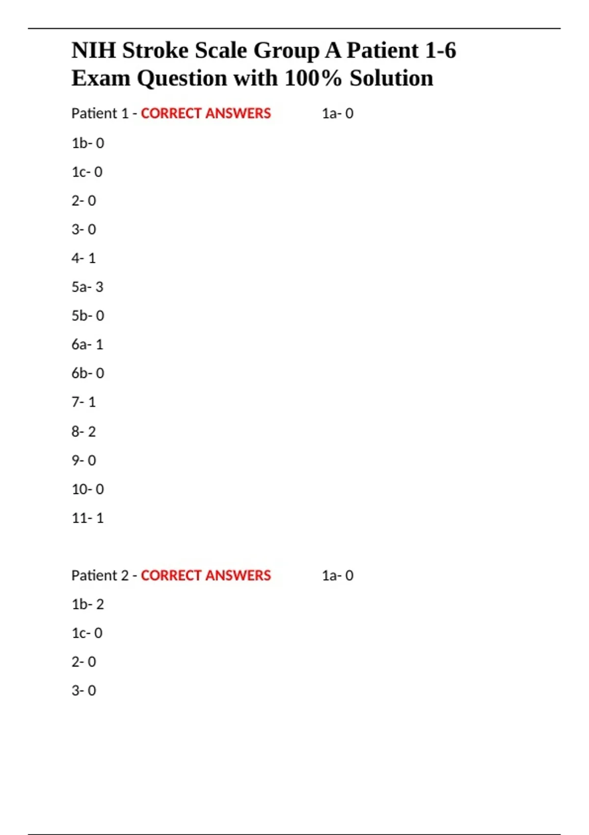 NIH Stroke Scale Group A Patient 1-6 Exam Question with 100- Solution.docx