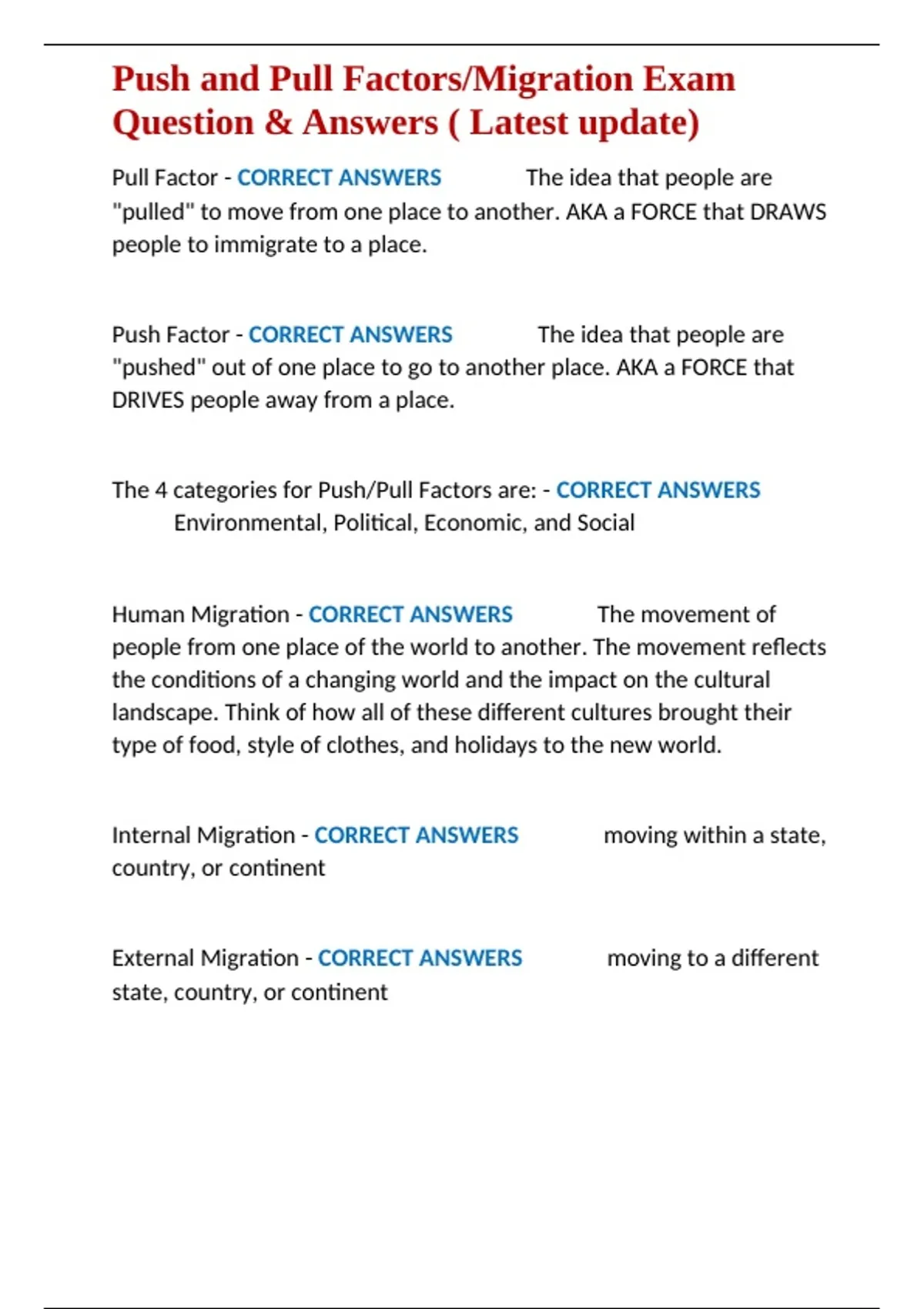 Push and Pull Factors Migration Exam Question & Answers ( Latest update).docx