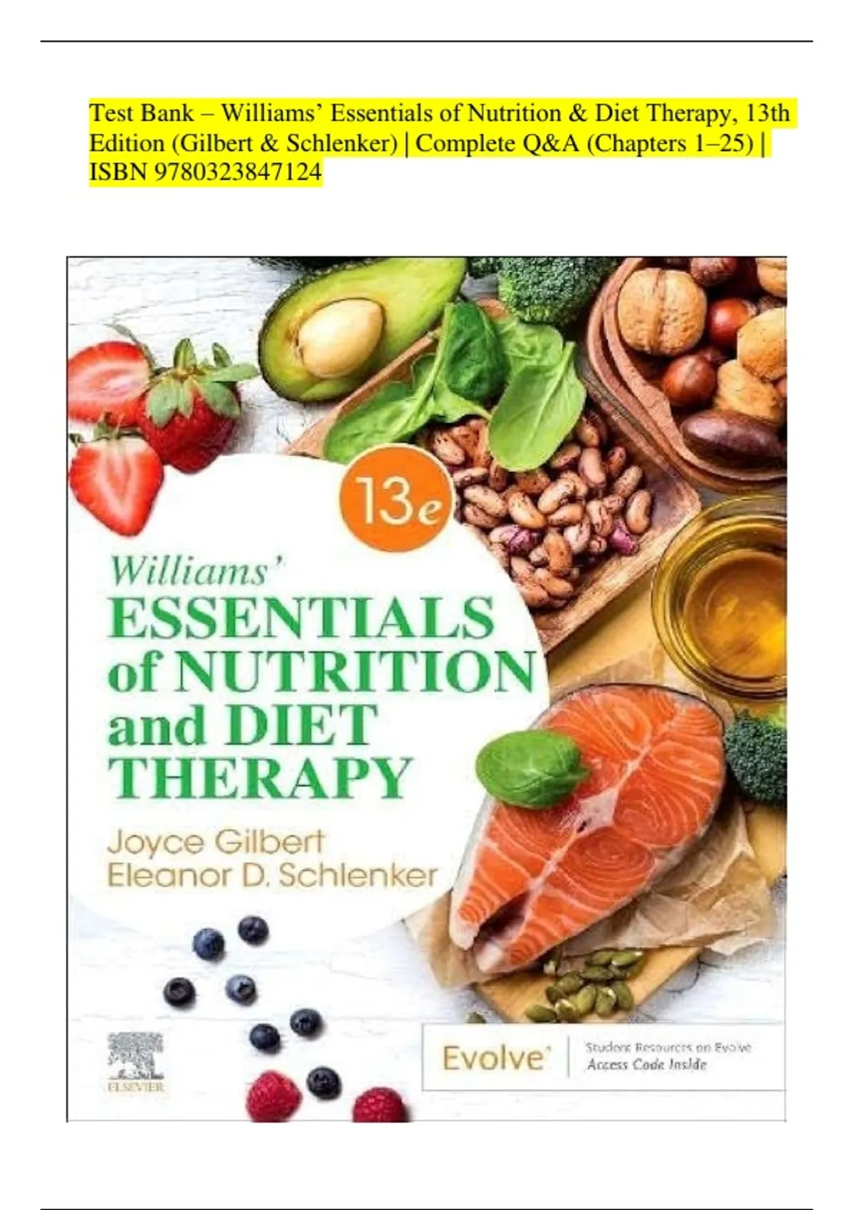 Test Bank – Williams’ Essentials of Nutrition & Diet Therapy, 13th Edition (Gilbert & Schlenker) | Complete Q&A (Chapters 1–25) | ISBN 9780323847124