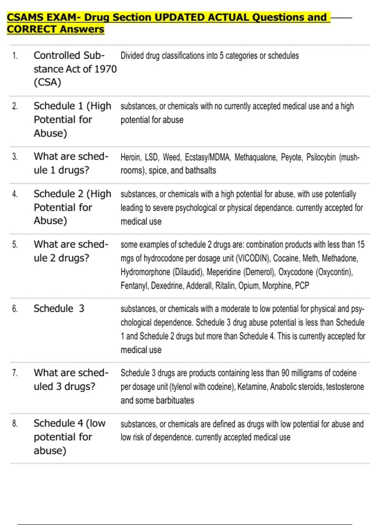 3. What are sched- Heroin, LSD, Weed, Ecstasy/MDMA, Methaqualone, Peyote, Psilocybin (mush-